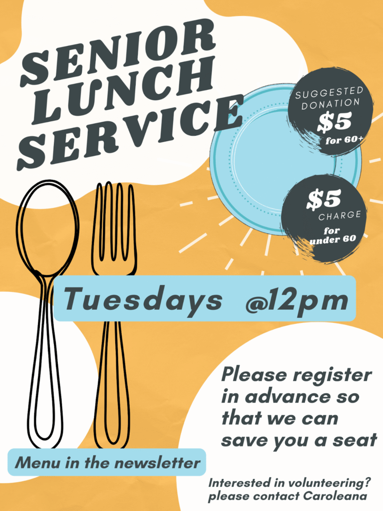 We continued to hold congregate lunches on Tuesday. In the month of December we served on 5 Tuesday, with 5 new guests.