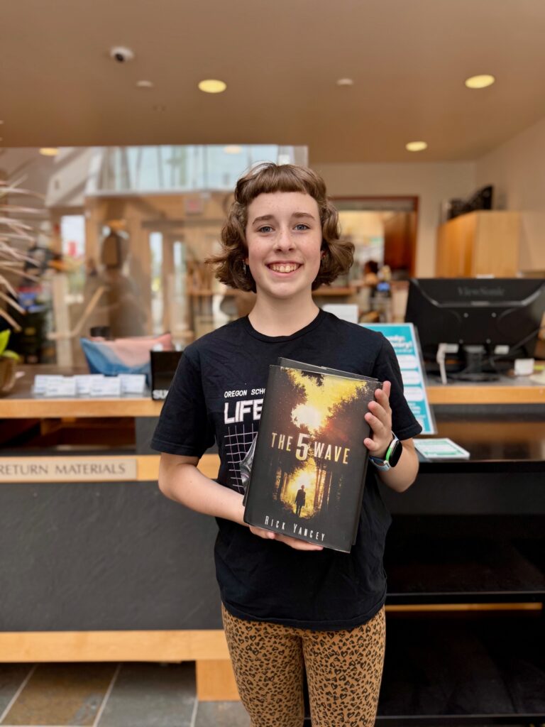 Literacy Night at Oregon Trail Academy – 46 kids and 20 adults came to the library table