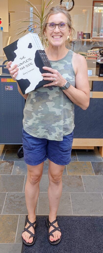 The Library took the challenge of Parks and Recreation and created a Gingerbread Library! A big thank you to the following staff who worked on it (and everyone else who worked in the library while we did!): Brianna Chase, Crista Doty, Kimberly Gomez-Ruelas, Kristi Granberg, Emily Huffman, Sarah McIntyre, and Maureen Houck for transport. And a special huge thank you to Jim Freeman – our amazing volunteer who helped with woodworking a logistics.