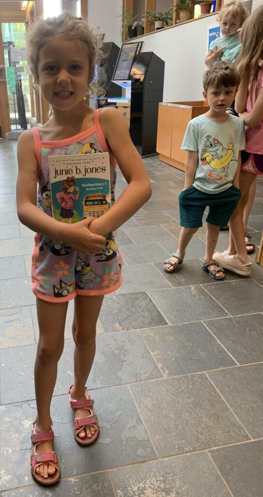 This month we talked to 95 (123 last month) people at the Mt Hood Farmers Market and 131 (99 last month) people at the Hoodland Farmers Market.  We collected a total of $183 (last month $187) to help us upfit the Mobile Library.
